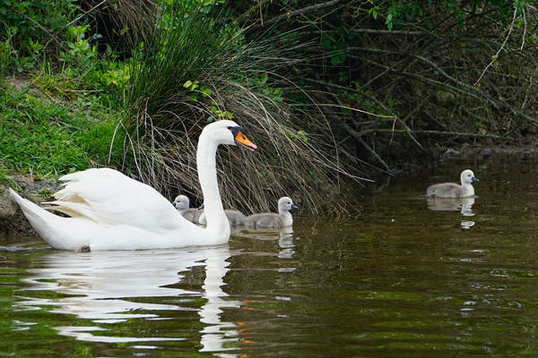Sur l’eau calme, une famille avance d’un même élan. Le cygne guide, les petits suivent, confiants, serrés les uns contre les autres. Dans cette scène paisible, la jeunesse apparaît comme une promesse fragile : celle d’apprendre, d’explorer, de grandir sous un regard protecteur. Une douceur silencieuse qui rappelle que chaque chemin commence par un premier sillage.