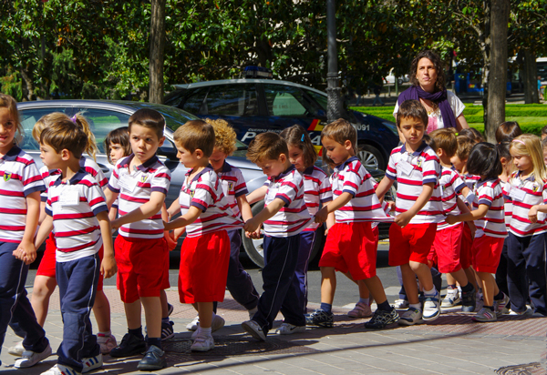 En file indienne, les enfants marchent vers le monde, main dans la main. Leurs pas encore hésitants dessinent pourtant une énergie collective, celle d’un groupe qui apprend à avancer ensemble. La jeunesse, c’est cette aventure partagée où chaque trottoir devient un terrain d’exploration.